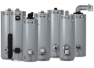 - Tank-Style Water Heaters. Comes with a sacrificial anode rod and brass drain valve. Meets the low NOx emission demands.